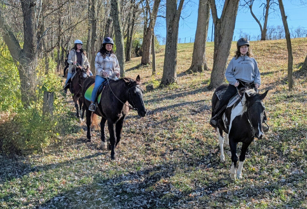 • Ride the horses over the hills, around the ponds and in the woods. To ensure your safety and enjoyment, horseback riding includes instruction about how horses think and how to communicate successfully with them.